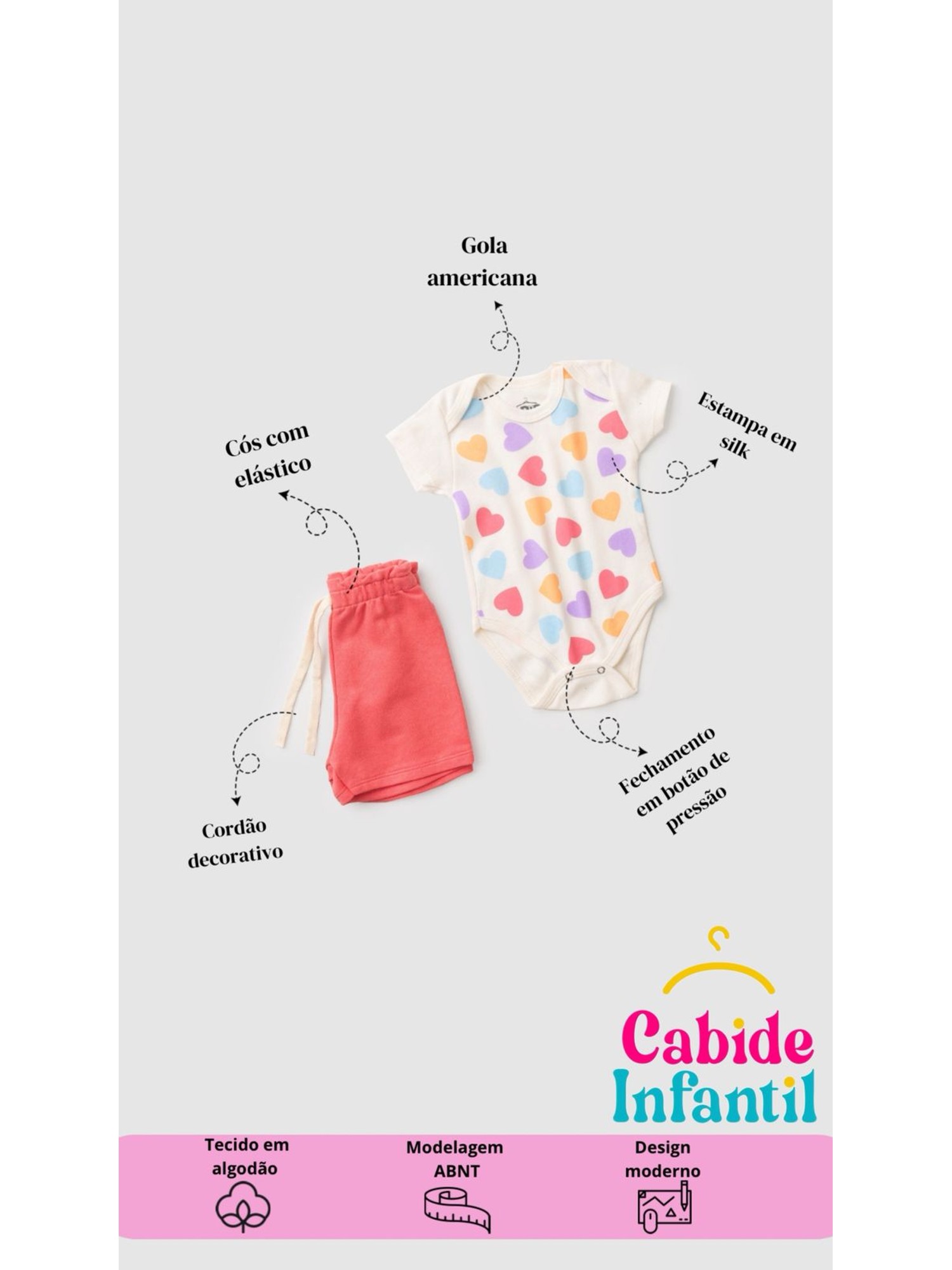 O conjunto para bebês é uma opção prática e confortável para o dia a dia dos pequenos. Composto por duas peças essenciais, o body em suedine 100% algodão e o short em moletinho sem felpa 100% algodão, este conjunto oferece qualidade e maciez para a pele sensível do seu bebê.